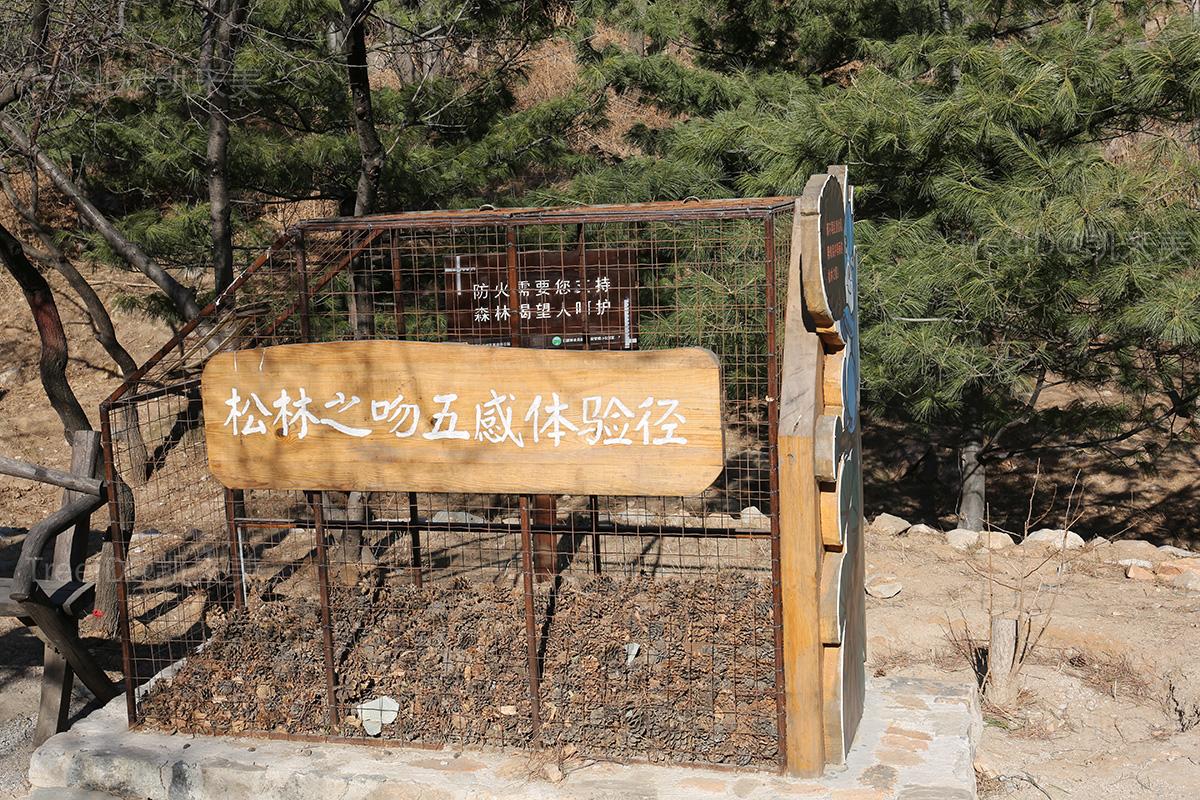 “五感”是指通过闻一闻、找一找、摸一摸、看一看和听一听这五种方式,来亲近大自然了解大自然,这里的主要参观体验点有:松果收集墙、森林大课堂、松鼠小北的家、天坑花岗岩乐园等。