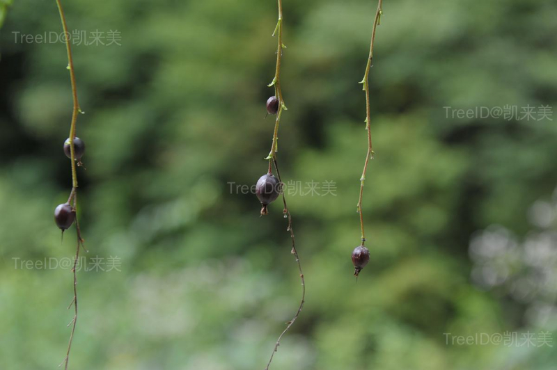 叶卵圆形,长5-12厘米,长宽近相等,基部深心脏形,两面无毛,掌状3,裂片卵圆形或三角状卵圆形。花两性;总状花序疏松下垂;花萼绿色带紫红色;花瓣近扇形。果实球形,黑色,无毛。