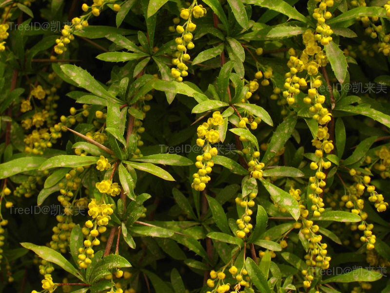 穗状总状花序具15-35朵花,长2-4厘米;花黄色。