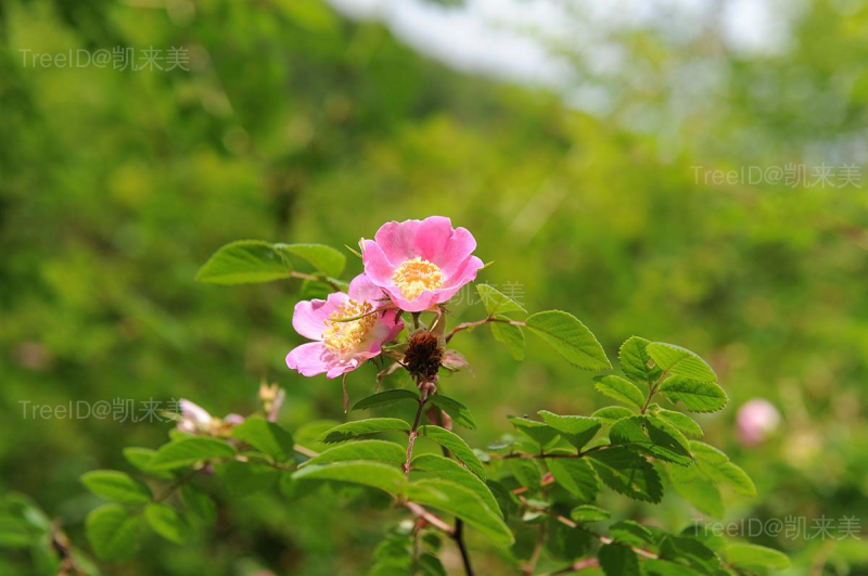 花单生或3-5朵排成伞房状;小苞片1-3枚,卵形;花直径2-3.5厘米;萼片卵状披针形,内面密被柔毛;花瓣粉红色或玫瑰色,宽倒卵形。
