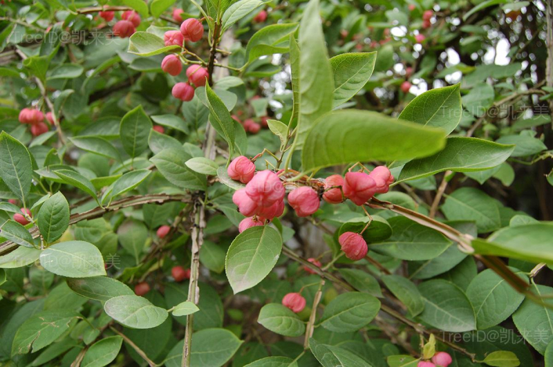 蒴果4棱,倒圆心状,长7-9毫米,直径约1厘米,粉红色;种子椭圆状,假种皮橘红色,包被种子全部。