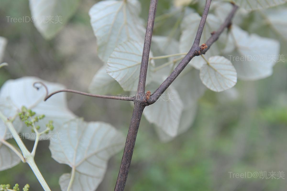 小枝圆柱形,有纵棱纹,被灰色或褐色蛛丝状绒毛。卷须2叉分枝,密被绒毛,每隔2节间断与叶对生。