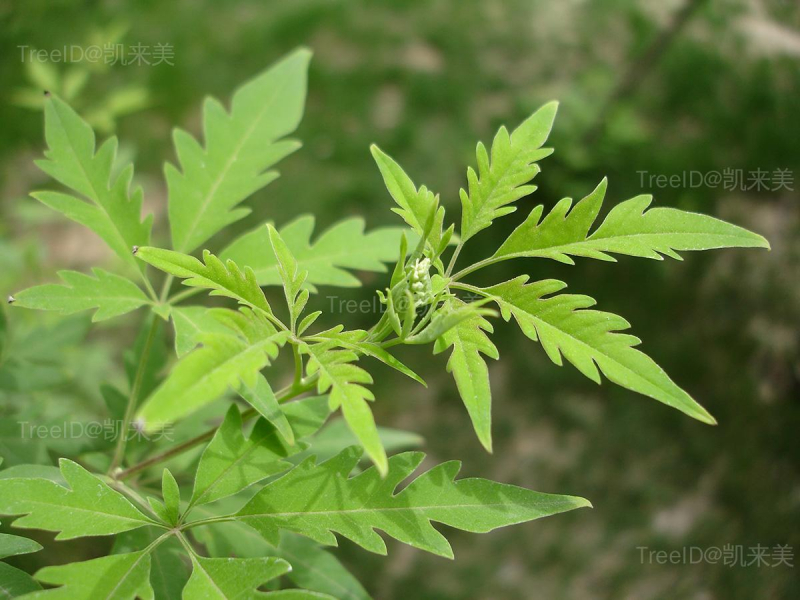 掌状复叶,小叶片边缘有缺刻状锯齿,浅裂以至深裂,背面密被灰白色绒毛。
