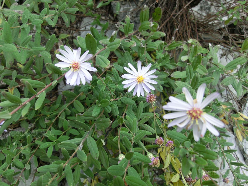 头状花序径约1.5厘米,在枝端单生或排列成伞房状;花序梗短或长达3厘米。总苞半球形,长约5毫米。舌状花十余个,白色或浅红色.