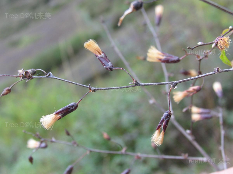 瘦果纺锤形,具10纵棱,密被粗毛。