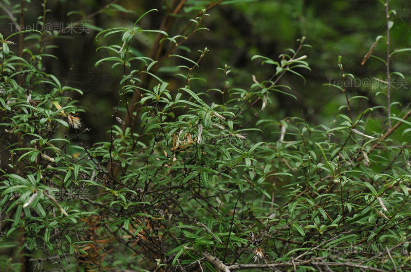 长枝上的叶互生,线状披针形,长7-30毫米,宽2-4毫米,全缘,下面厚被绢毛;叶柄短;短枝上的叶3-4片簇生,披针形或倒披针形,长10-35毫米,宽2-6毫米。