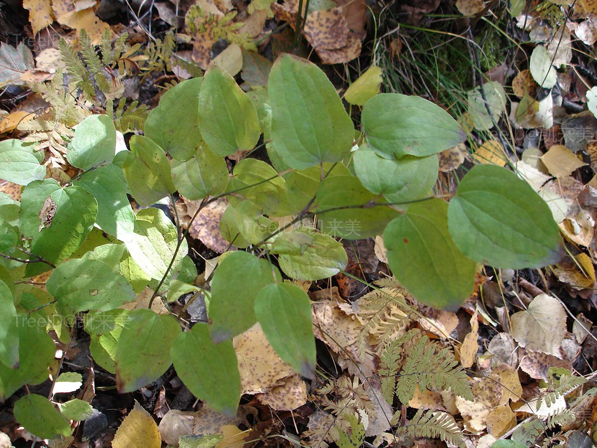 叶卵形或近圆形;叶柄长5-12毫米,向基部渐宽成鞘状。花单性,雌雄异株,绿黄色,有时淡红色,1-3朵或数朵排成伞形花序;总花梗纤细。浆果球形,熟时黑色。