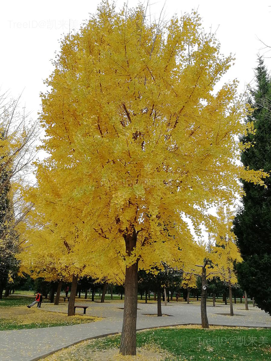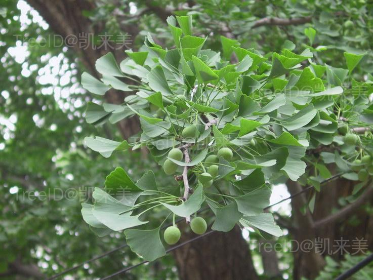 树皮灰色,纵裂。树冠幼时圆锥形,老时宽卵形。叶在长枝上互生,在短枝上簇生,具长柄,叶片扇形,先端常二裂。雌雄异株。雄球花柔荑花序状,雌球花具长柄,顶端生两个直立胚珠。种子核果状,熟时黄色。