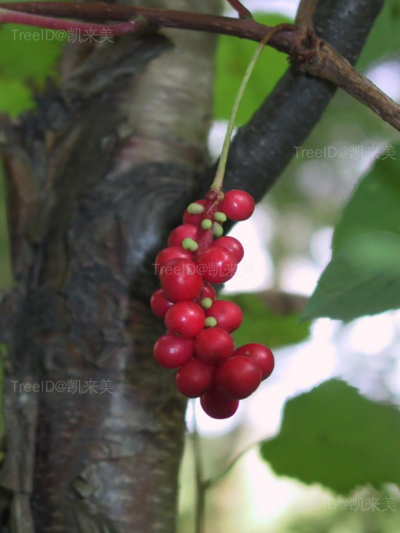 浆果近球形,红色,肉质,排列在伸长的花托上,形成穗状聚合果。