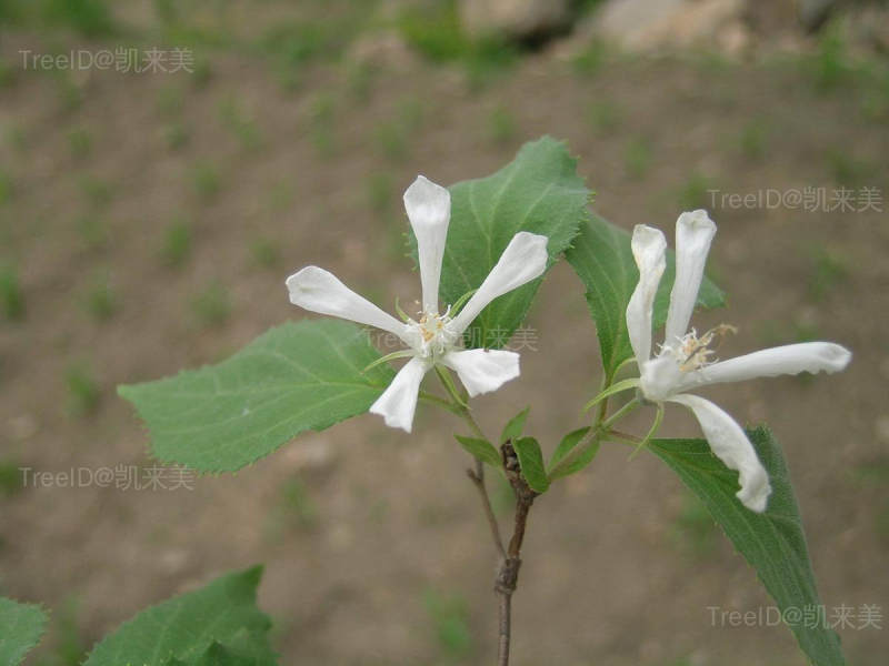 花常1-3朵,聚伞状;萼裂片5,密被星状毛,花瓣5,白色,雄蕊花丝上部有2钩状齿。