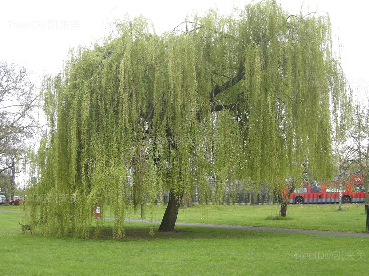 落叶乔木;树皮灰黑色,不规则开裂;小枝细长,下垂,无毛,有光泽,褐色或带紫色。